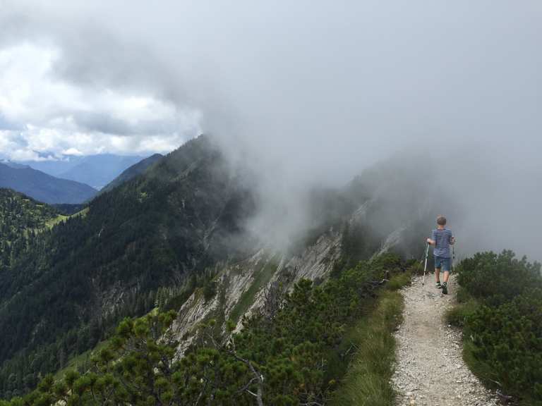 Nicht so stark begangene Tour was vielleicht auch am heutigen Wetter gelegen hat. Aussicht Gipfel des Heimgarten Loop from Ohlstadt. Die Abkühlung die manche im Freibad suchen finde ich bevorzugt in luftigen.